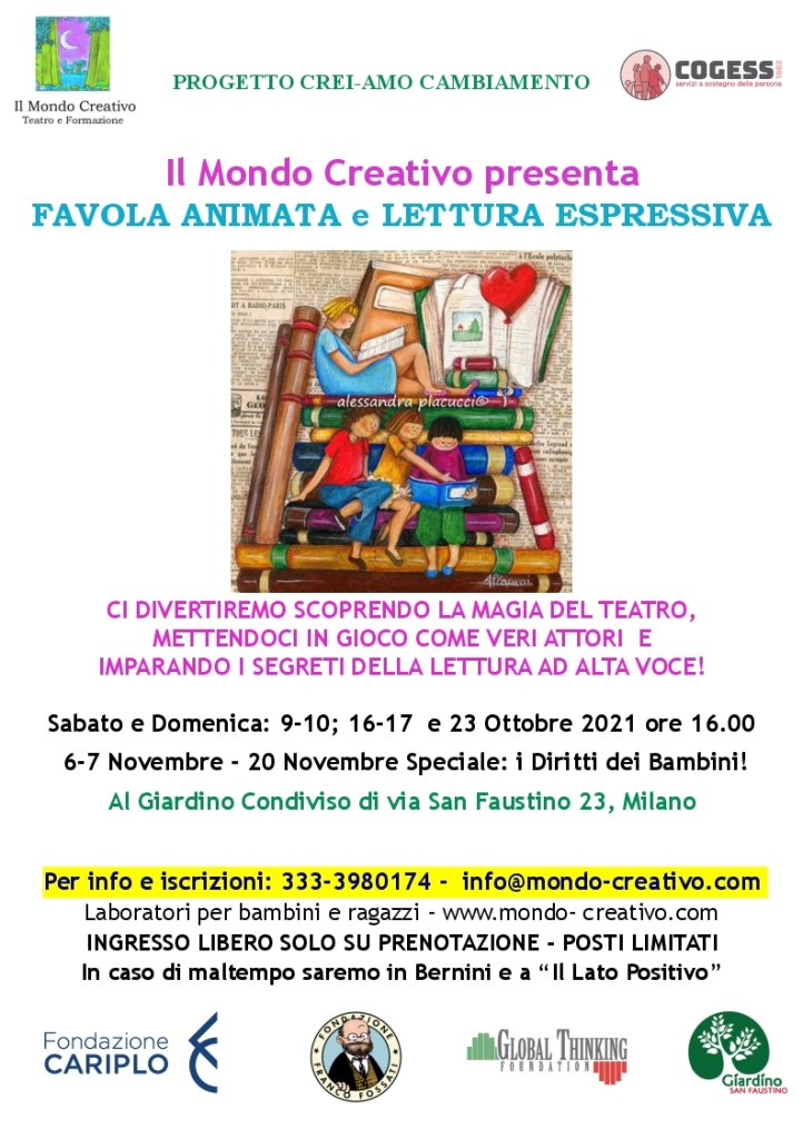 Favola animata e lettura espressiva ottobre 1, 2021ottobre 4, 2021 Condividi: Fai clic per condividere su X (Si apre in una nuova finestra) X Fai clic per condividere su Facebook (Si apre in una nuova finestra) Facebook Mi piace Caricamento... Correlati