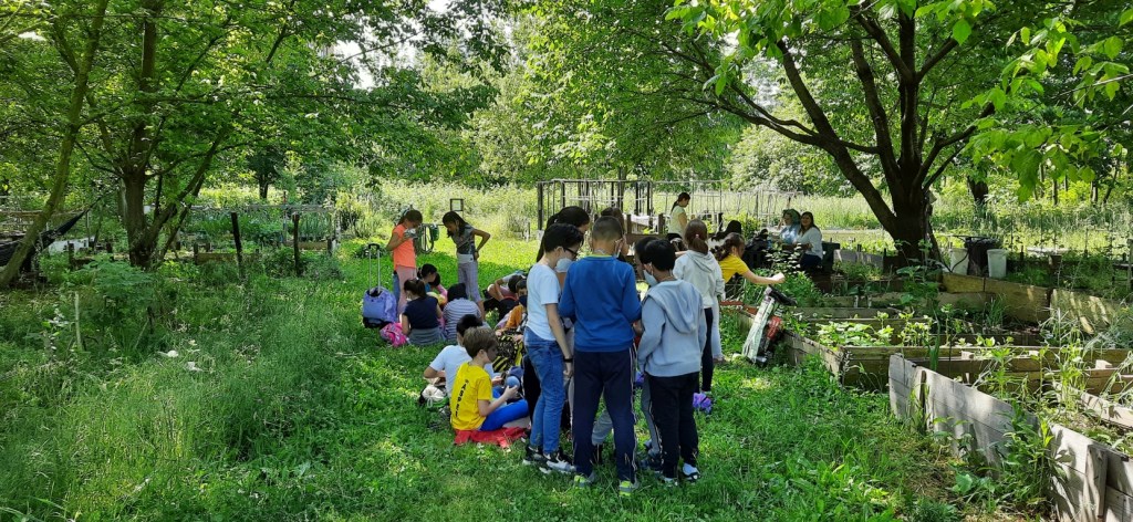 Le classi prima di via Cima e terza di viale Romagna dell’Istituto comprensivo Viale Romagna in vista al Giardino. Si scopre la natura, si conosce il proprio territorio, le coltivazioni e l’intervento umano per preservare e favorire la biodiversità; gli incontri con api, girini, conigli selvatici, il riconoscimento di piante e ortaggi, sono un’occasione per uscire dalla città pur essendo ancora a Milano.