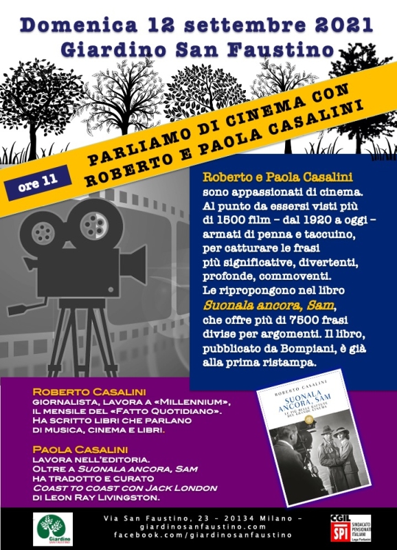 Ecco alcune immagini del gradevole incontro di domenica 12 settembre con Roberto Casalini, autore del libro “Suonala ancora Sam, le più belle battute del cinema”. Ci ha raccontato come è nato il libro, e insieme abbiamo rivissuto scene memorabili di molti film!