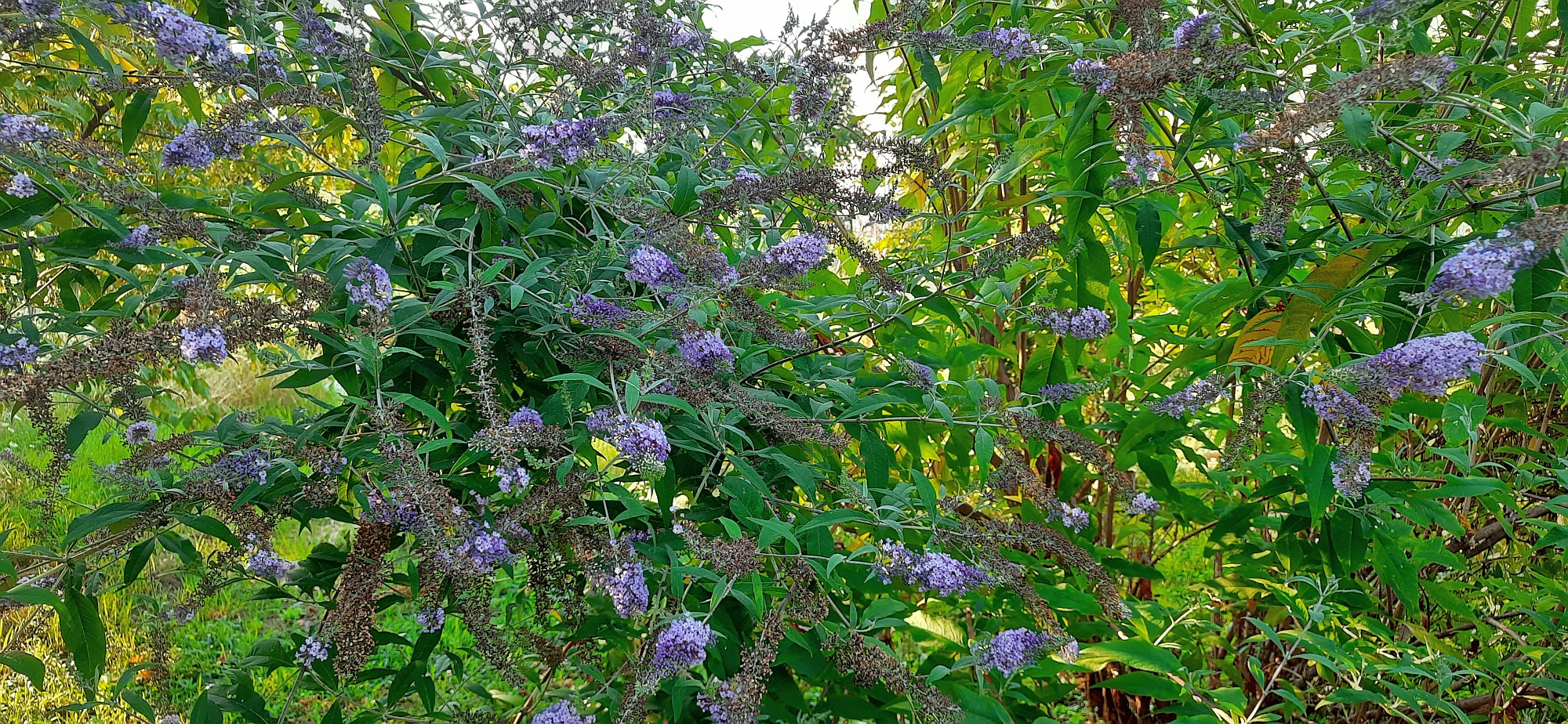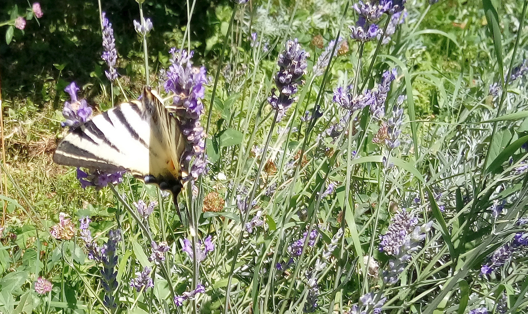 Le piante officinali come lavanda, rosmarino, menta richiamano numerose specie di farfalle, altre piante come borragine e buddleja offrono fiori con le medesime tonalità di blu e viola.