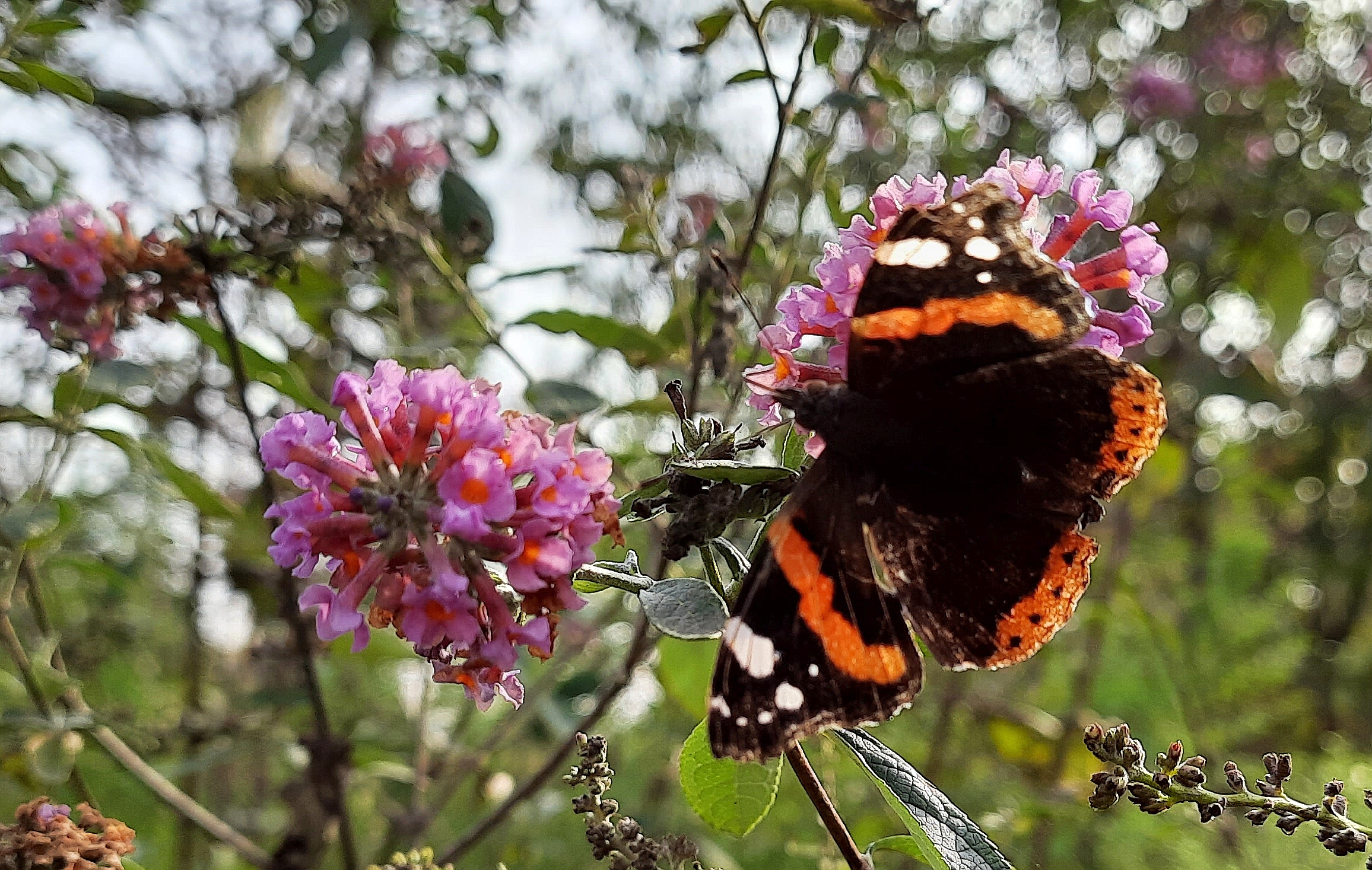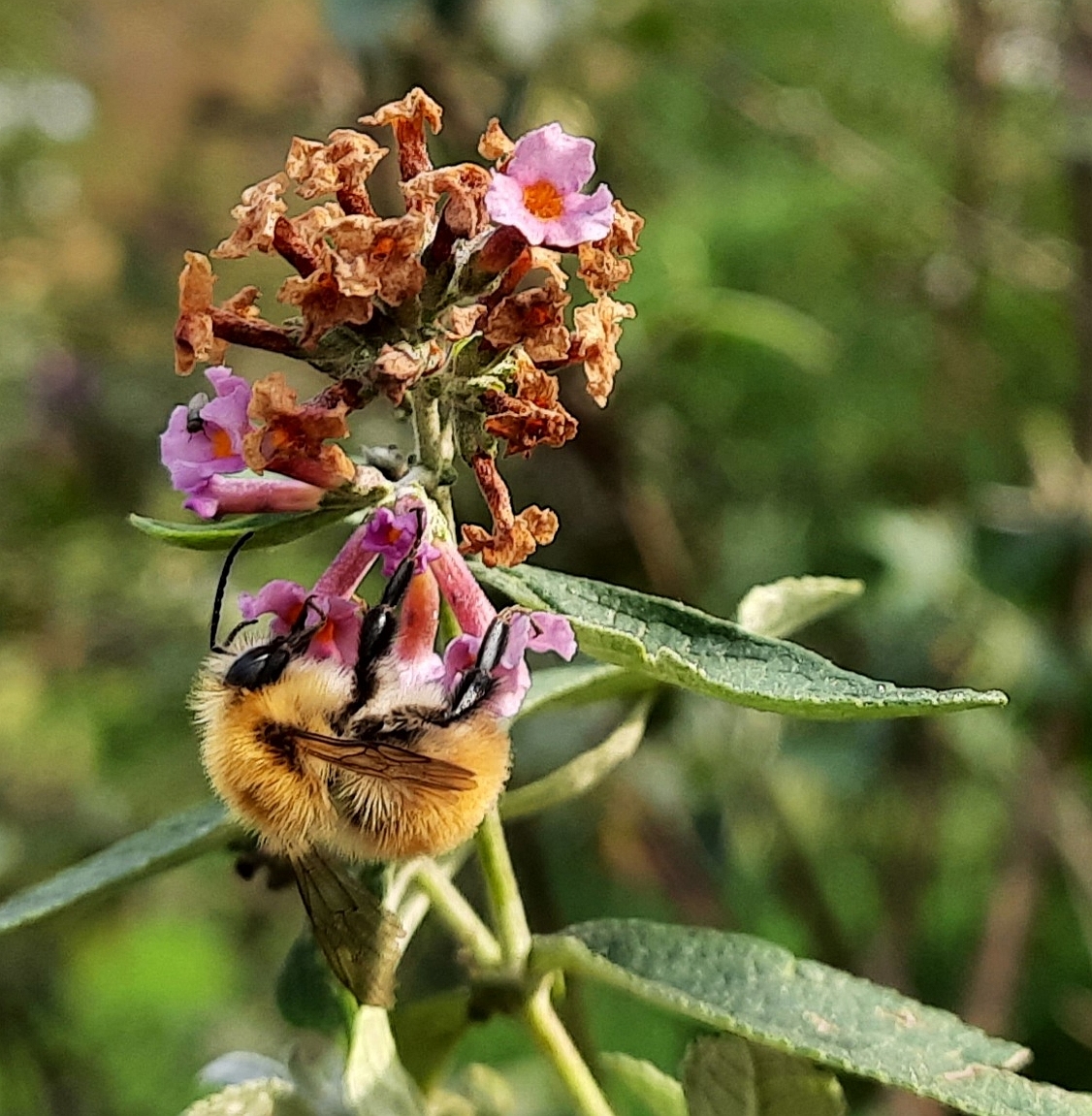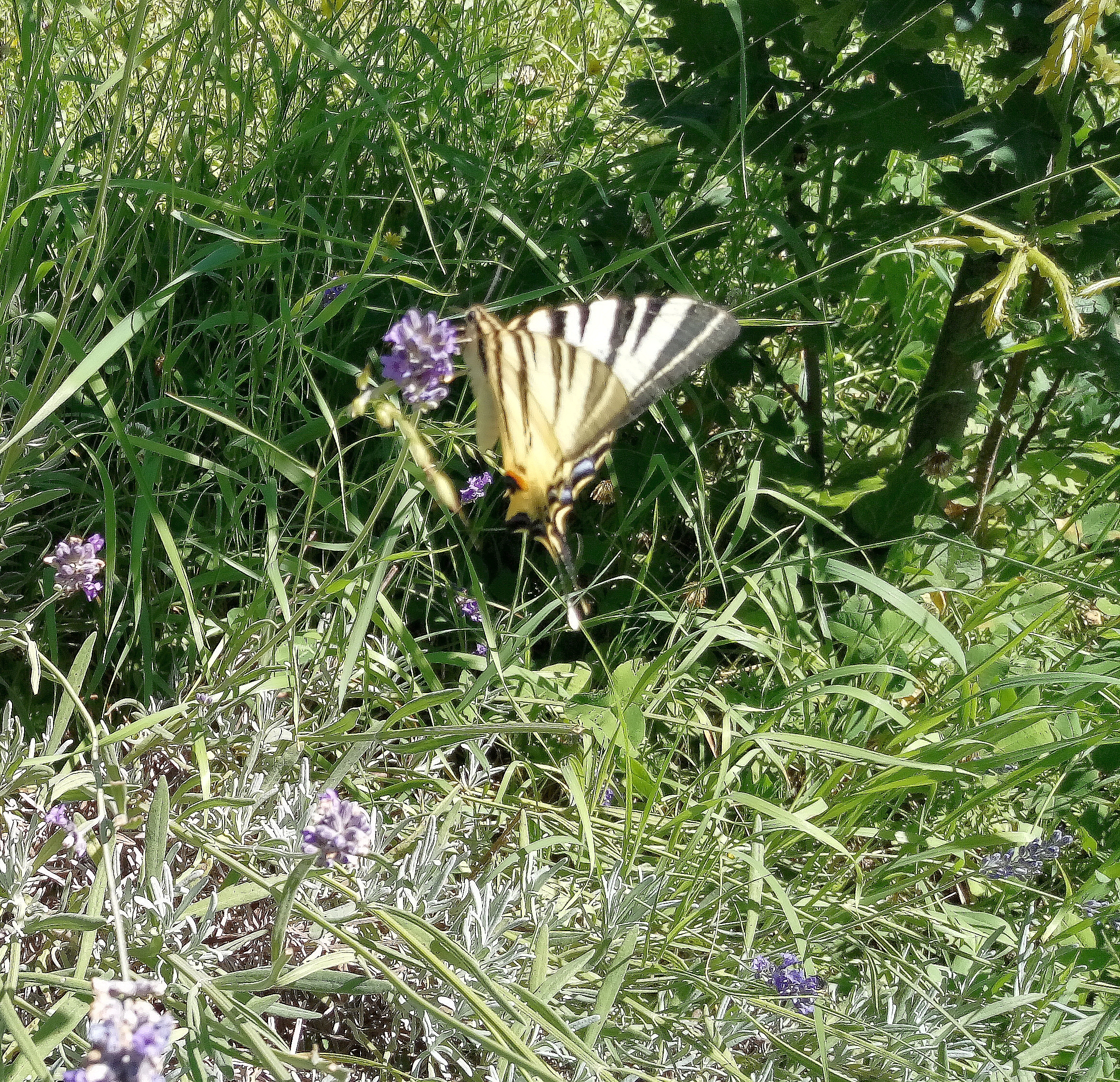 Naturalmente, altri insetti impollinatori come api e bombi aprroffitano dell’abbondanza di nettare, condividendo con le farfalle questo piccolo habitat.